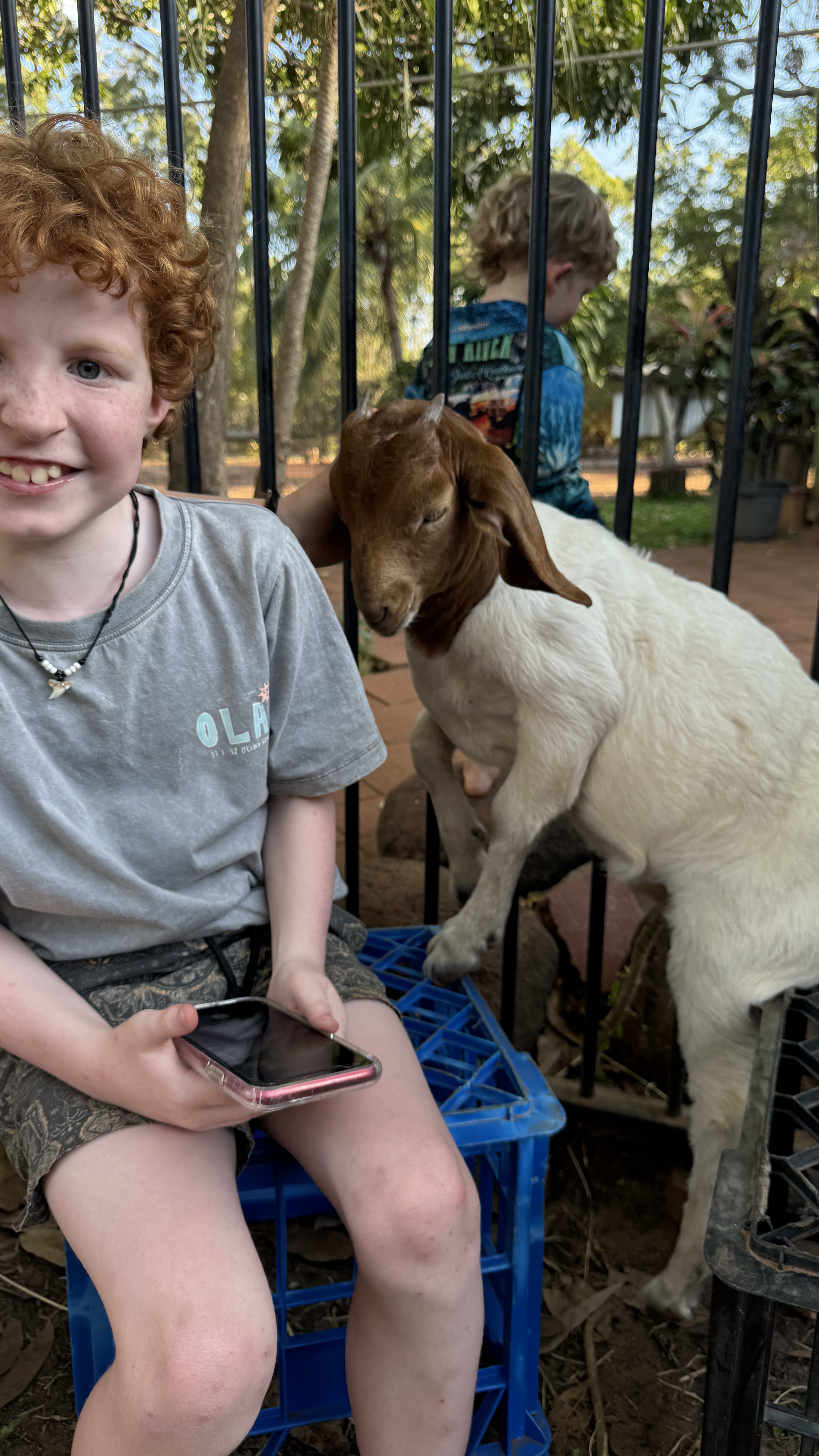 Saturday 26th of July – Heading further south. Smashed out some k’s on the red corrugations, and enjoyed some of the smooth tarmac roads in between. Decided to stay at Hann River Roadhouse and was an amazing little place this was. We were meant to stay here last year but didn’t as we pushed on to make some ground. But I am really glad we stayed here this time around. Big grassy sites, toilets and showers, cold beer and hot food, so many animals, and a shipping container pool! The pool was perfect to cool off in. We were able to feed the baby goats a bottle! (River’s highlight on the trip haha) A chicken had made a nest on the roof of the fuel pumps, and the eggs had all hatched, so we watched them gather the chicks and bring them down to the ground. Dion dropped a line in the river, but no luck (he hadn’t caught a single thing on this trip haha). We highly recommend staying here.