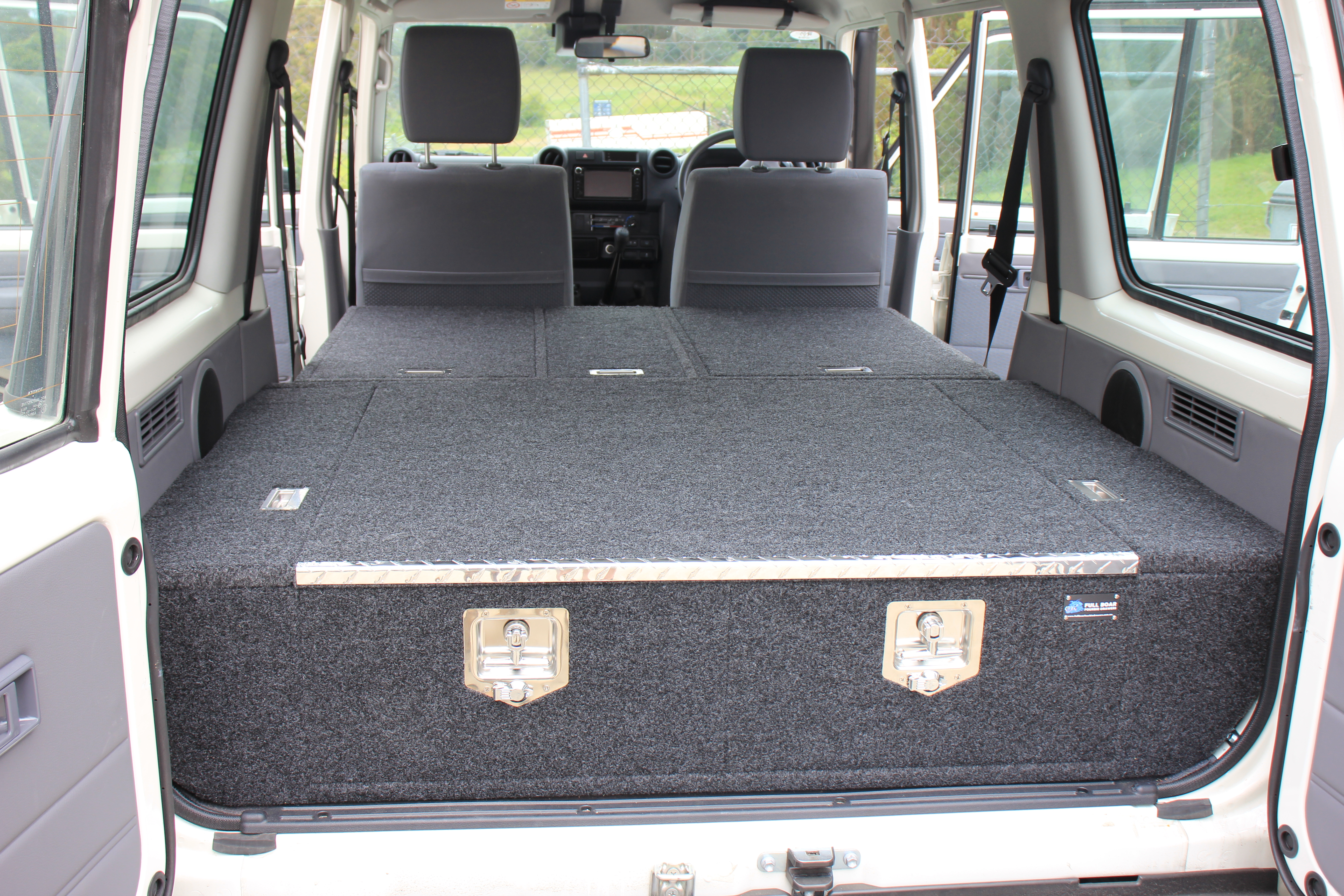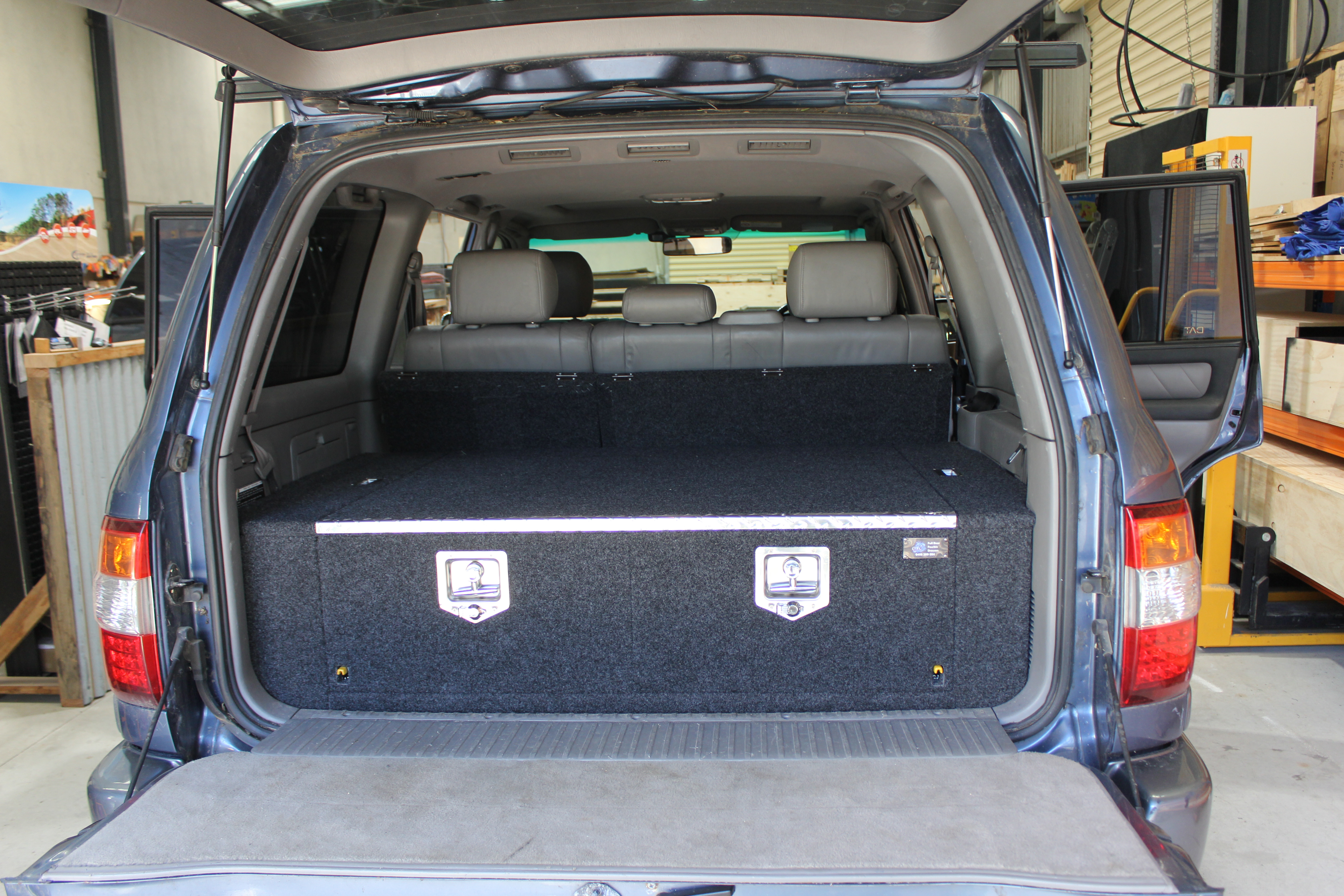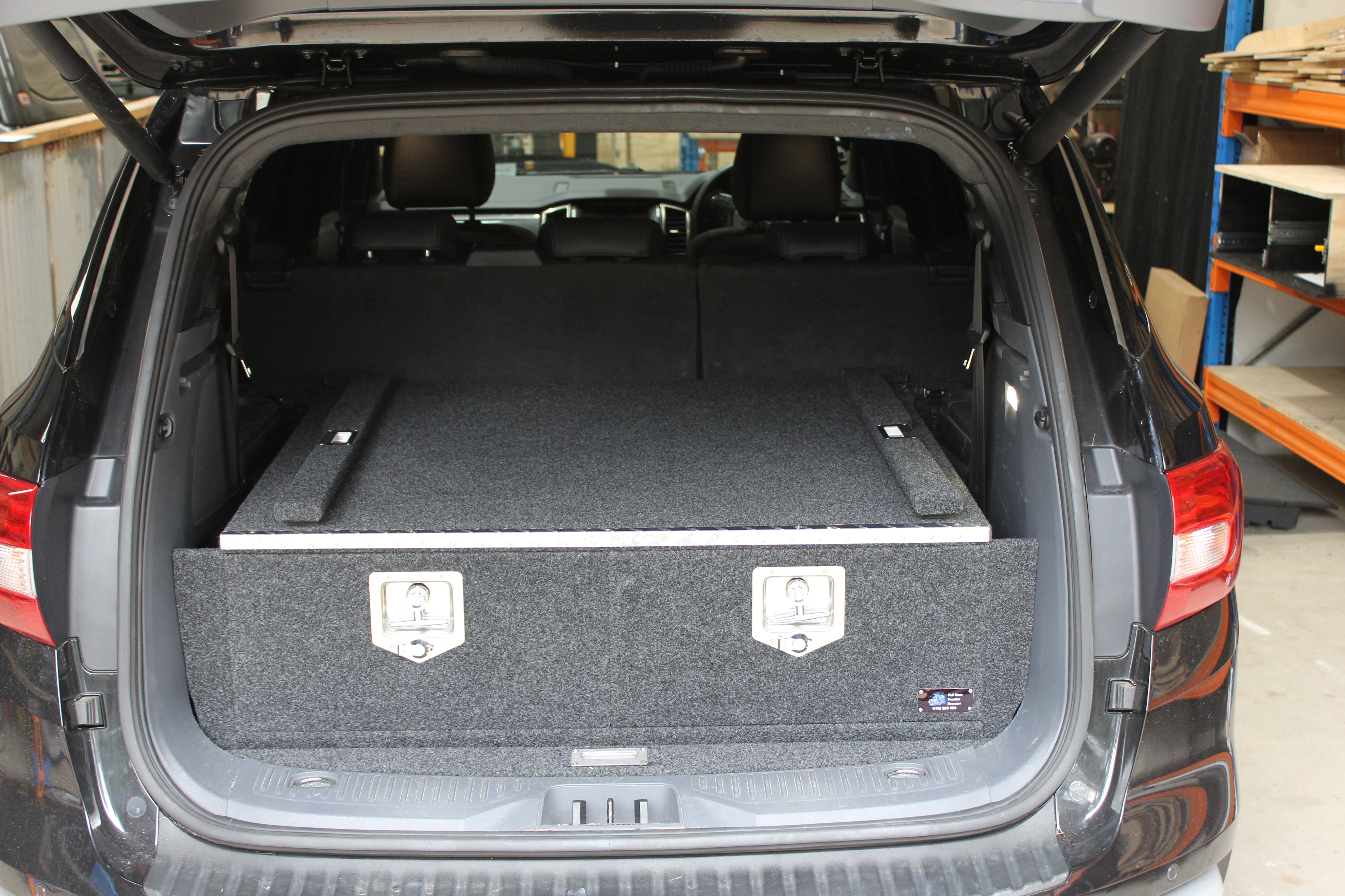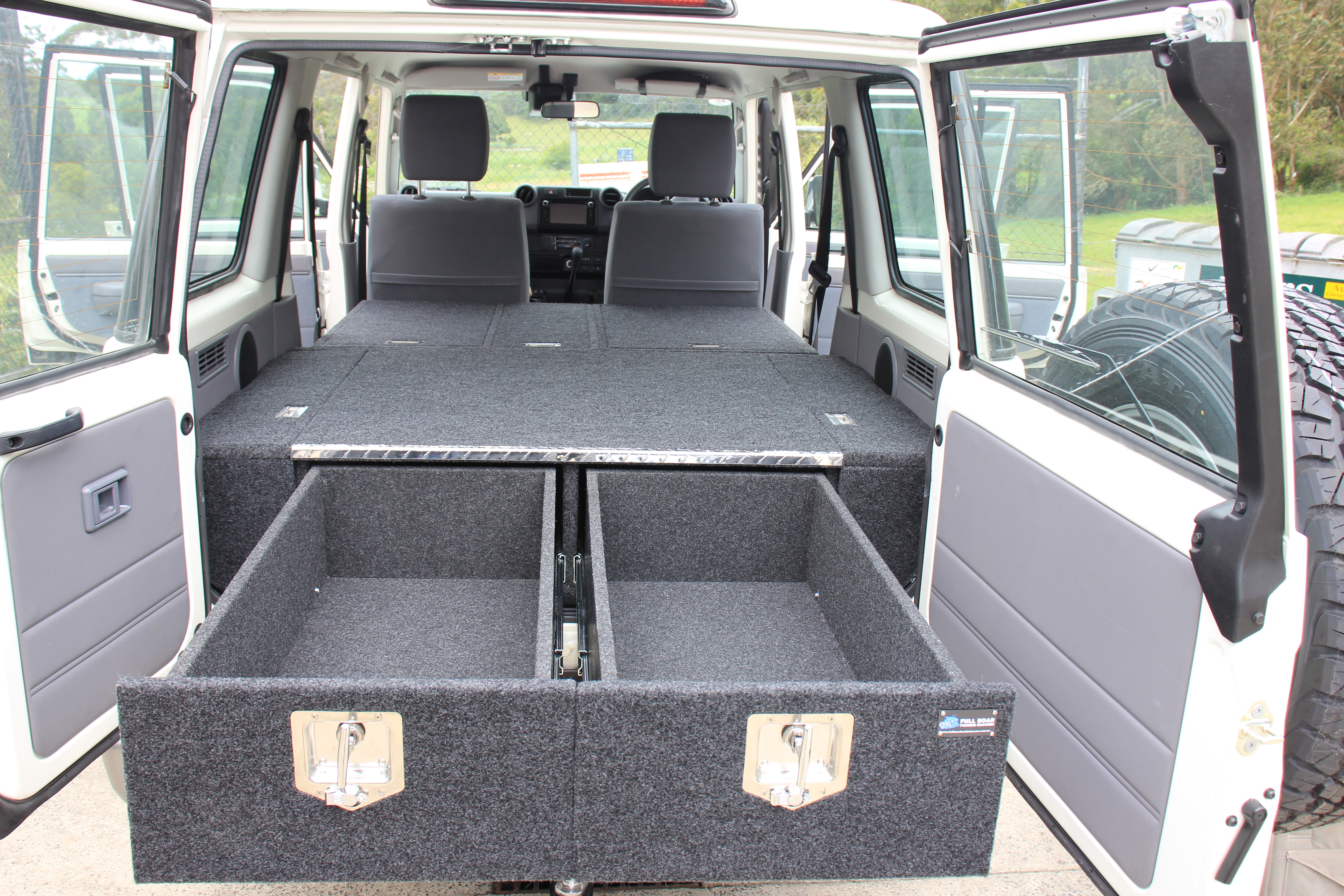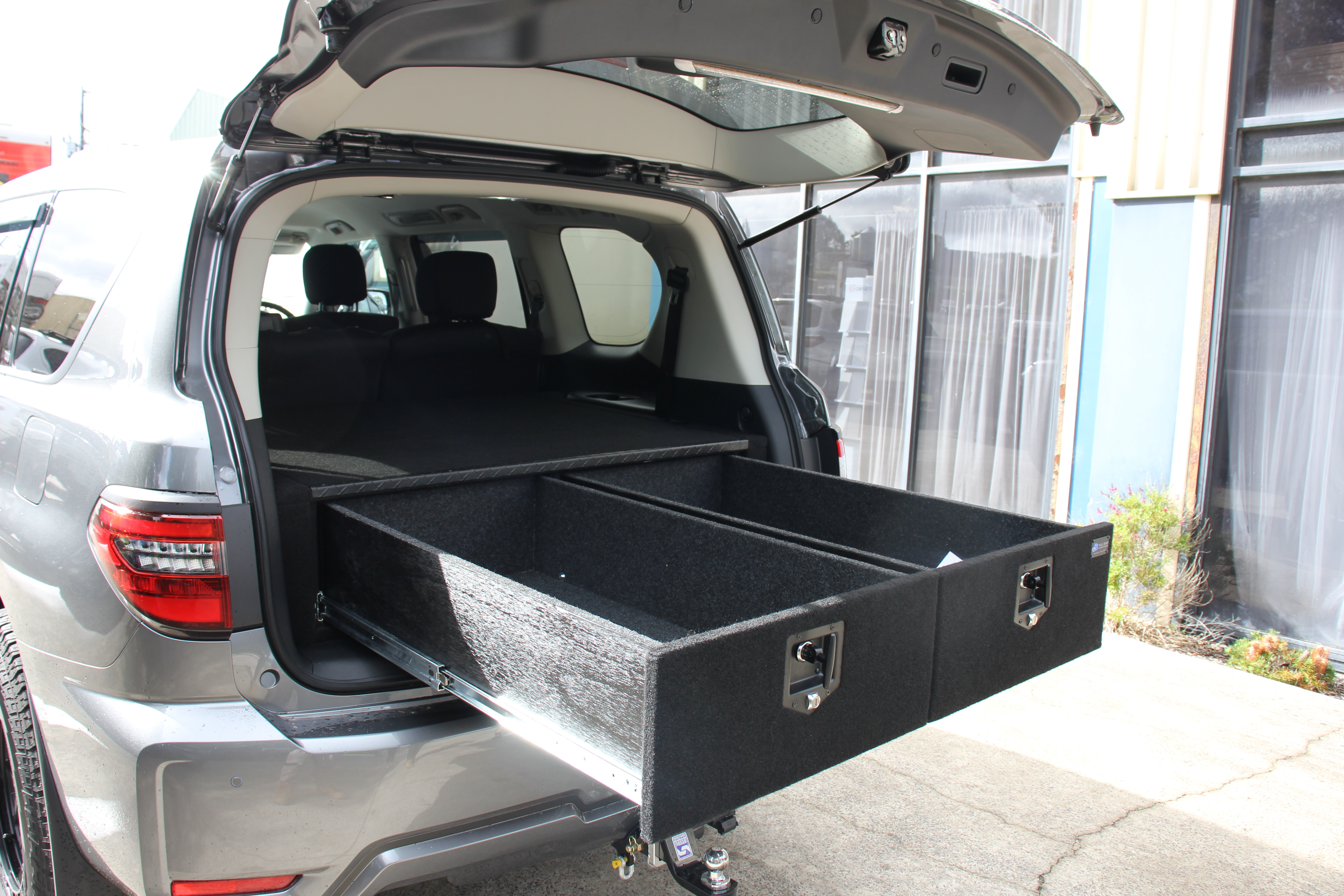 The two drawer system. Can be made to suit any wagon vehicle. Side wing kit is included. Width and depth vary to each specific vehicle.