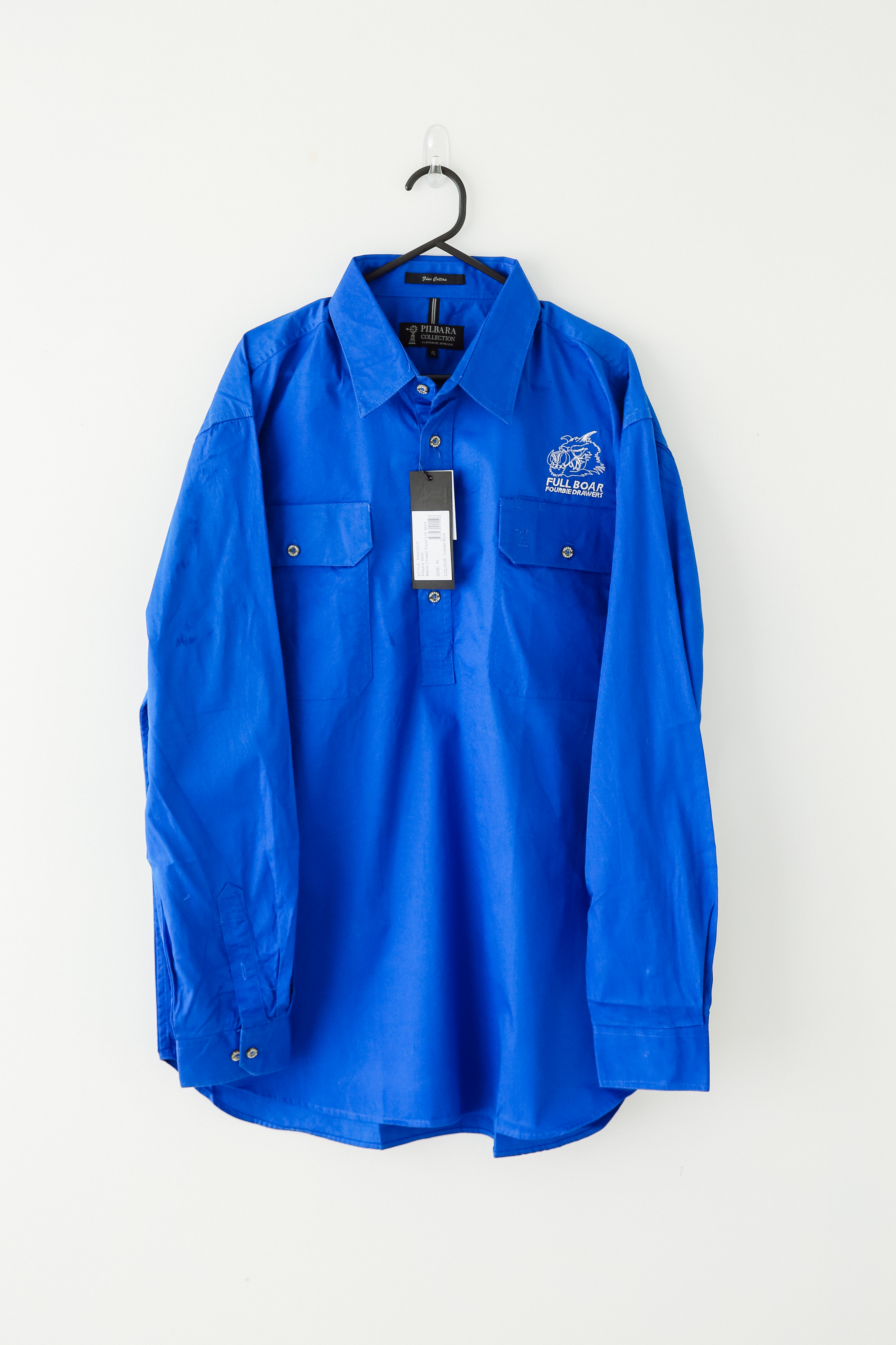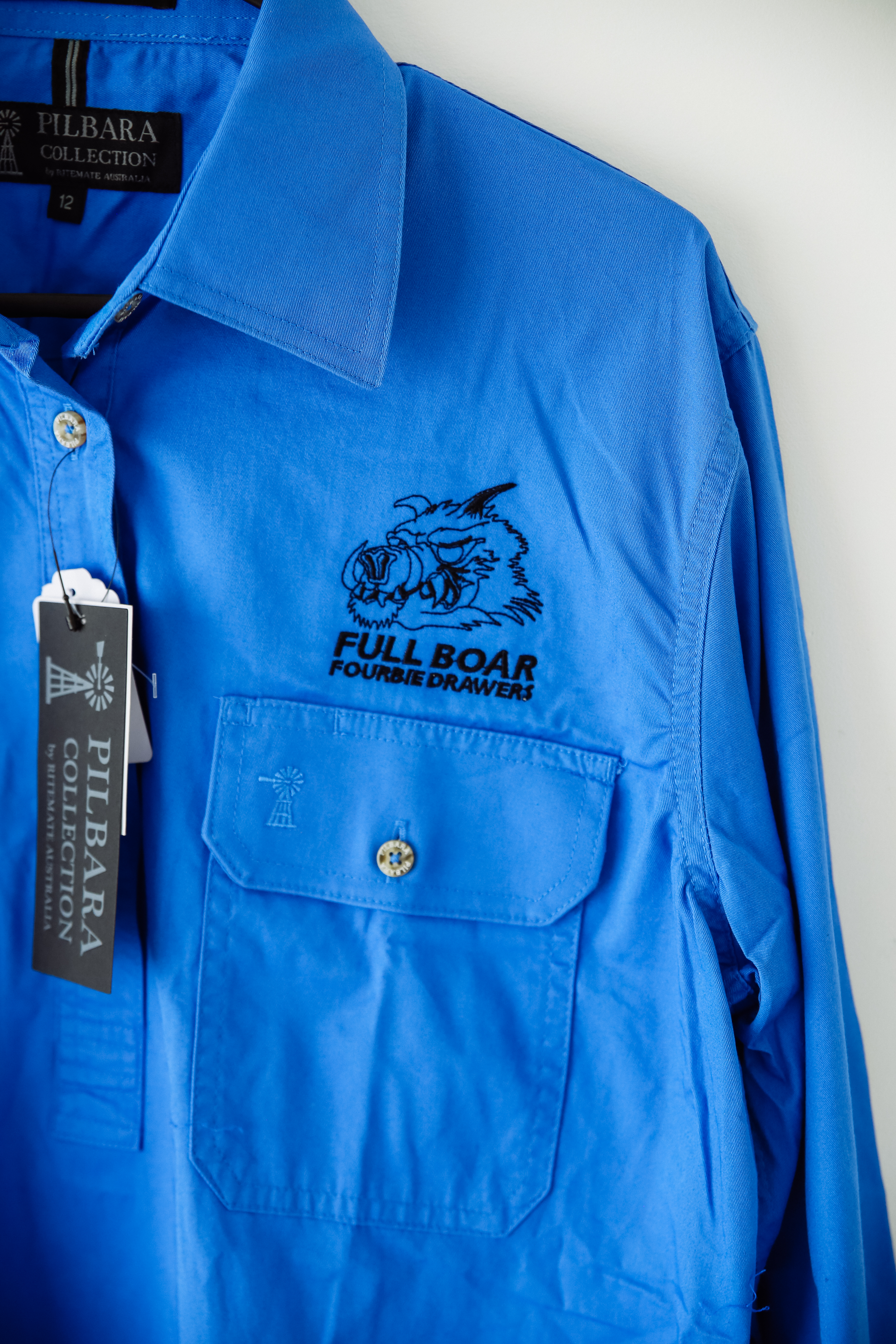 Full Boar embroidered Pilbara Shirt Mens Closed Front L/S Shirt